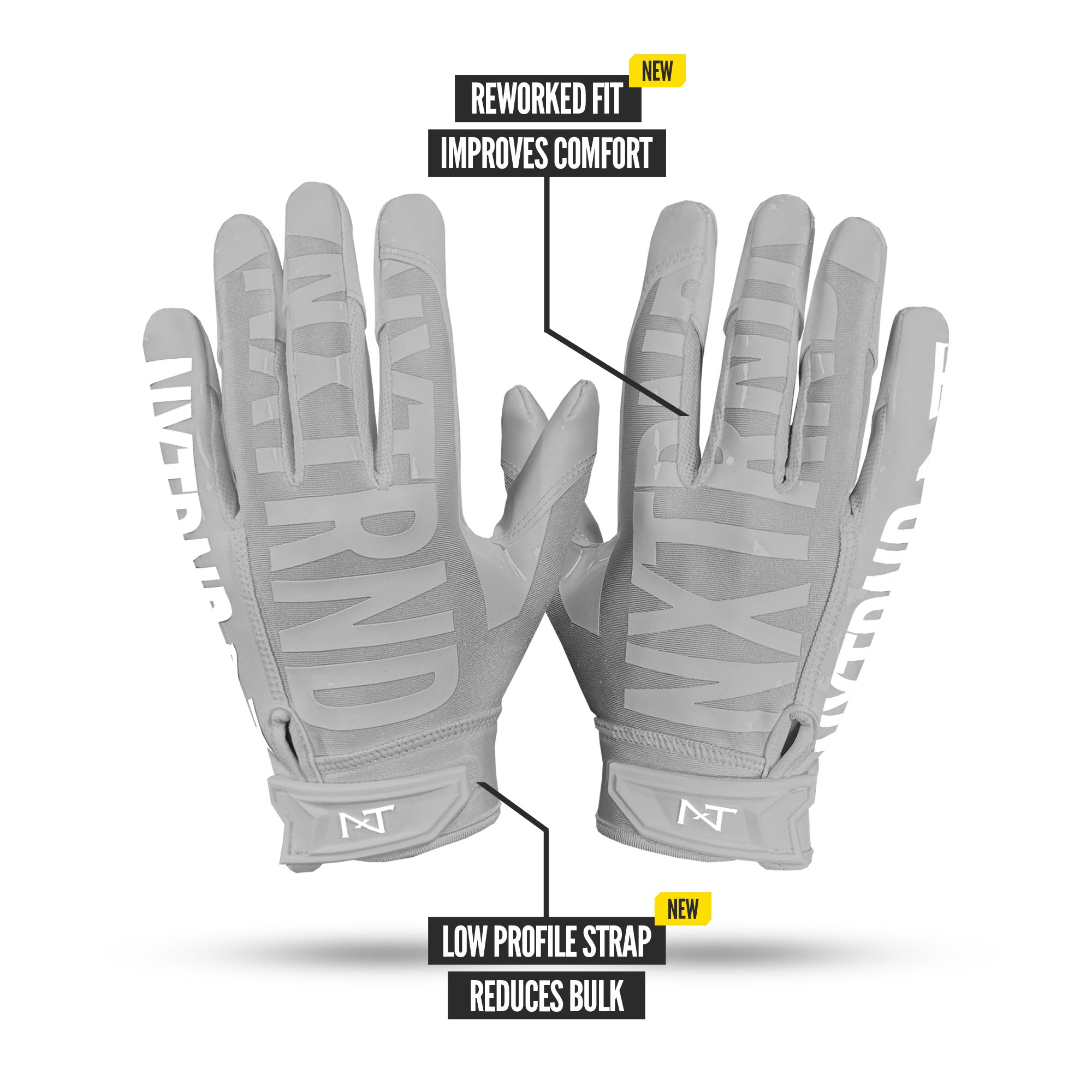 Play like the pros with NXTRND G1 Pro® football gloves: reworked fit. shorter finger caps for better ball feel. and updated stitching to reduce bulk.