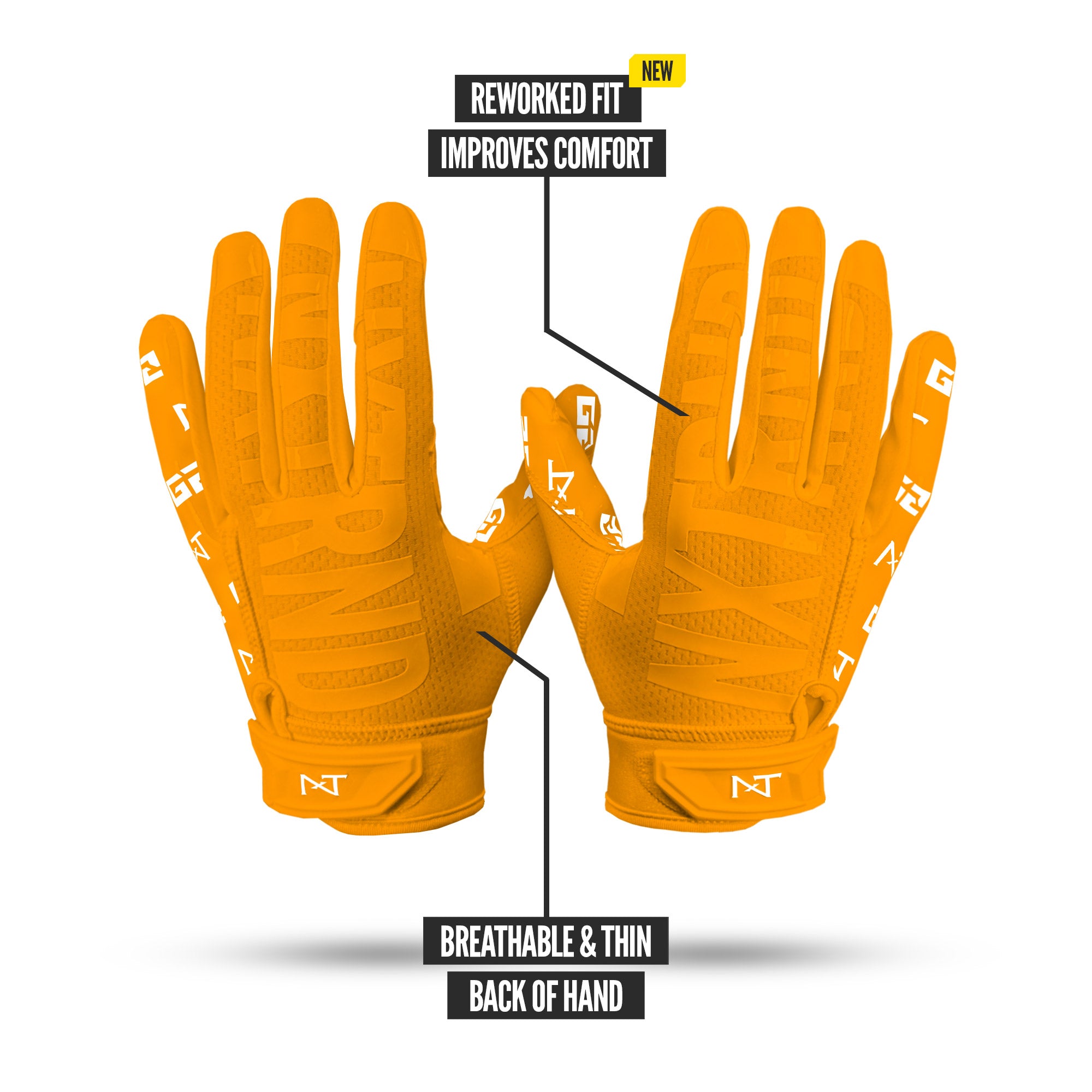 Play like the pros with G2 pro football gloves: improved fit. superior ball feel. and extended palm for better grip and catch control.