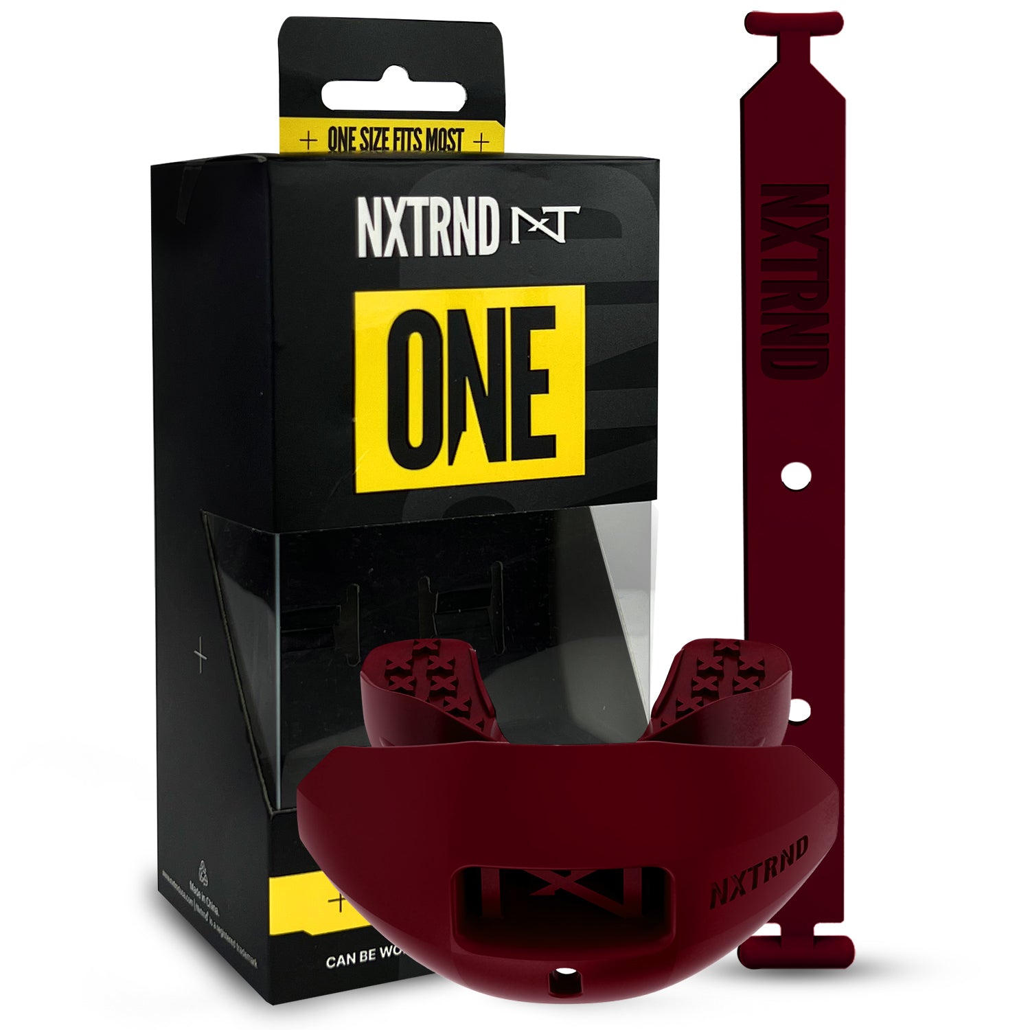 Introducing the Nxtrnd One® Mouthguard. Featuring a removable silicone strap and comfortable X-pattern bite pads.